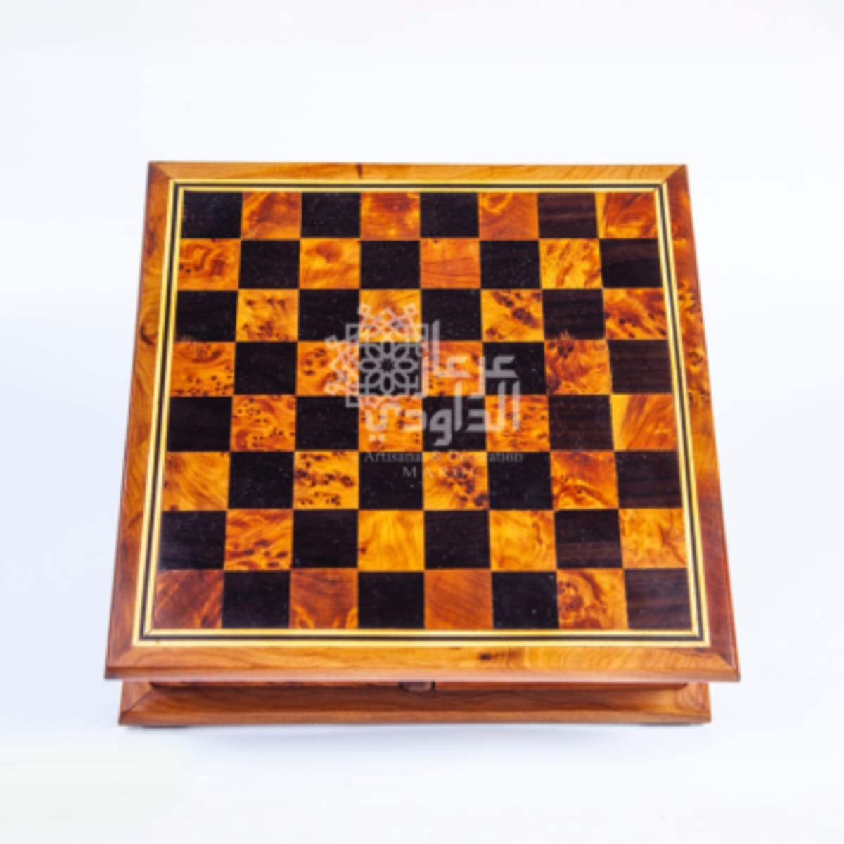 A beautifully hand-carved chess set, masterfully crafted from exquisite Thuya wood, offering both aesthetic appeal and a tactile experience for game enthusiasts and collectors alike. Each chess piece is carefully shaped by skilled artisans, highlighting the rich, natural grain and warm, honey-brown tones that Thuya wood is renowned for. The intrica...